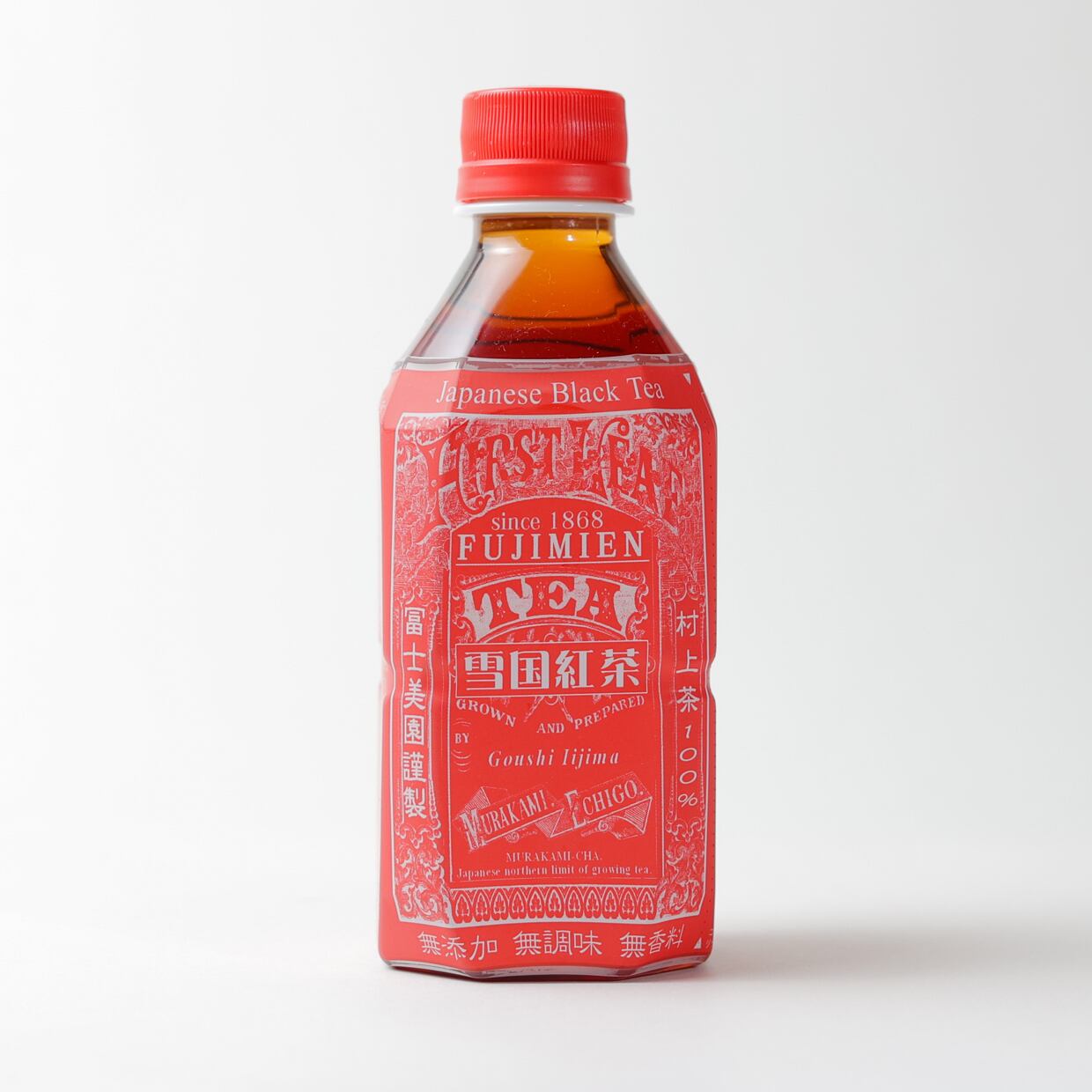 明治の時代、日本有数の茶産地として名を馳せた海外にも輸出された村上茶。そして村上紅茶。長い年月を経て「雪国紅茶」として復刻したその風味は爽やかな香りと、濃厚でまろやかな旨味。復刻以来、多くの評価をいただいている和紅茶をペットボトルに詰めました。茶は村上産100%。水は胎内高原の天然水。『純』新潟産のペットボトルです。